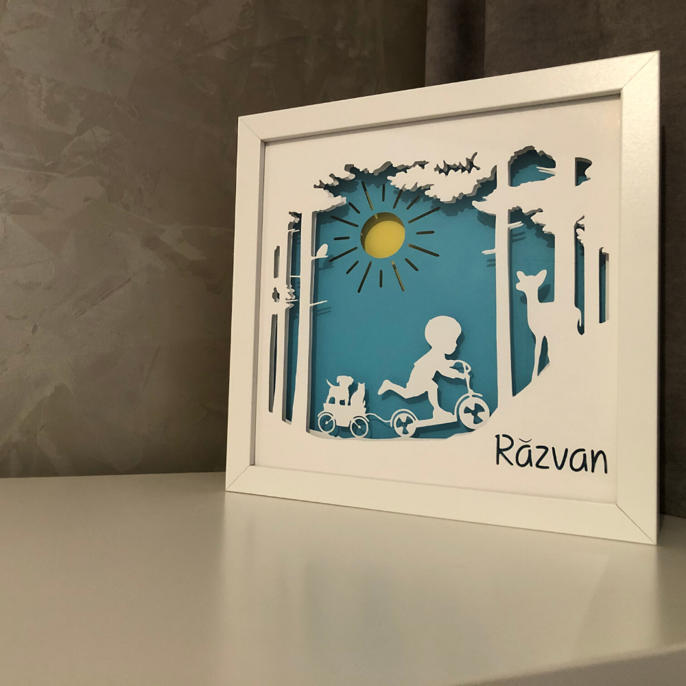 Fie ca este vorba despre o aniversare, o nunta, un botez sau un alt eveniment fericit, Noor Handmade Atelier te ajuta sa alegi cadoul perfect, care sa transmita emotie si recunostinta persoanelor importante din viata ta. Am lansat, pentru tine, un concept inedit in Romania: tablouri luminoase cu poveste. Sunt piese unicat, personalizate, care spun o poveste imaginativa prin iluminarea hartiei decupate si creeaza o atmosfera magica in incaperea in care sunt expuse, adaugand o nota de originalitate.
