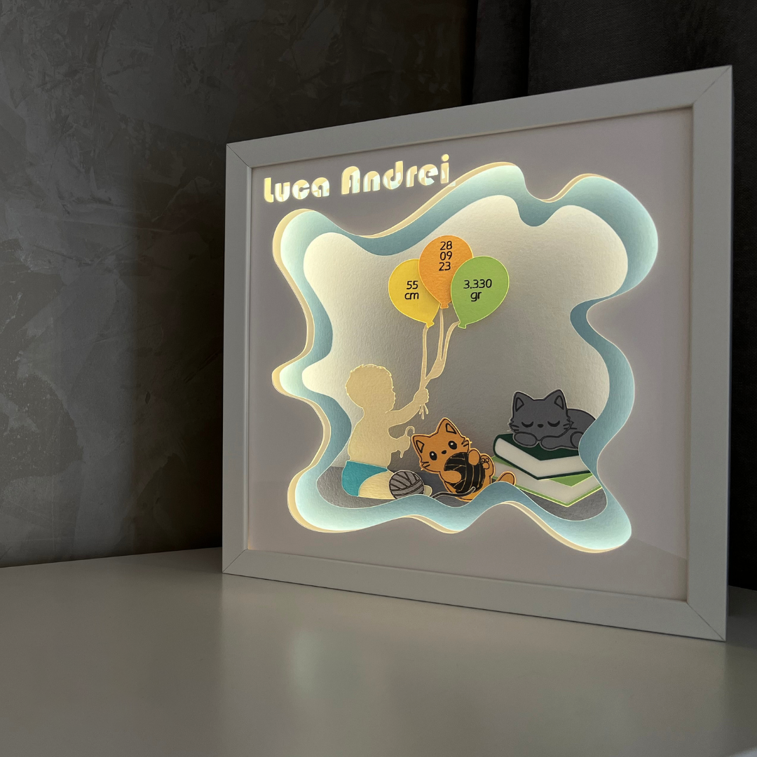 Fie ca este vorba despre o aniversare, o nunta, un botez sau un alt eveniment fericit, Noor Handmade Atelier te ajuta sa alegi cadoul perfect, care sa transmita emotie si recunostinta persoanelor importante din viata ta. Am lansat, pentru tine, un concept inedit in Romania: tablouri luminoase cu poveste. Sunt piese unicat, personalizate, care spun o poveste imaginativa prin iluminarea hartiei decupate si creeaza o atmosfera magica in incaperea in care sunt expuse, adaugand o nota de originalitate.