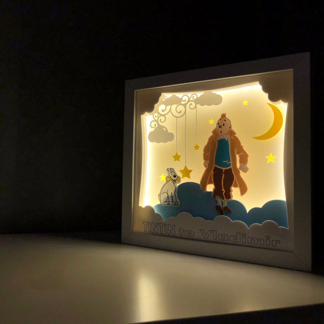 Tablourile luminoase lucrate manual, cu teme si mesaje personalizate, includ mai multe straturi de hartie, asamblate intr-o rama confectionata din MDF, cu protectie frontala din plastic polistirenic, fiind sigura pentru cei mici. Hartia utilizata pentru realizarea tablourilor este o hartie de calitate superioara, fara acid, care nu se ingalbeneste si are o rezistenta mare timp indelungat.