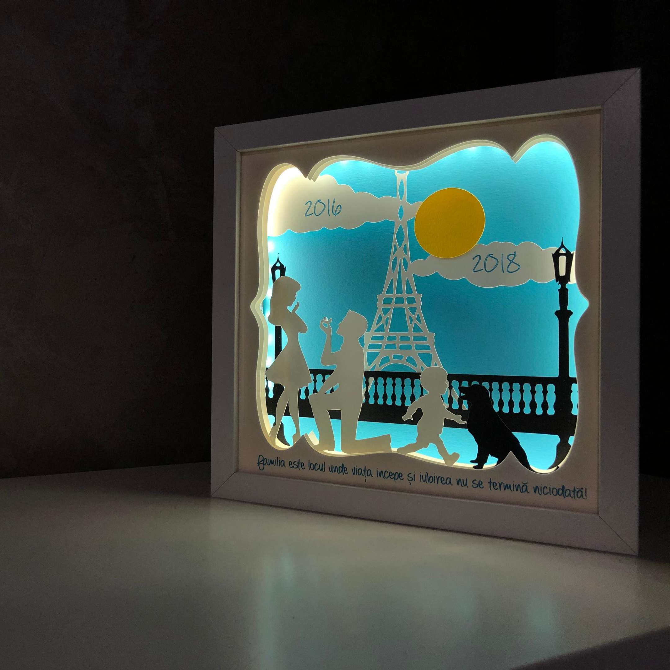 Folosite ca lampa de veghe pentru cei mici sau ca decor luminos 3D pentru cei mari, tablourile create in atelierul Noor emana o lumina calda si placuta, perfecta pentru povestile de la culcare sau ca sursa de lumina pe timpul noptii.