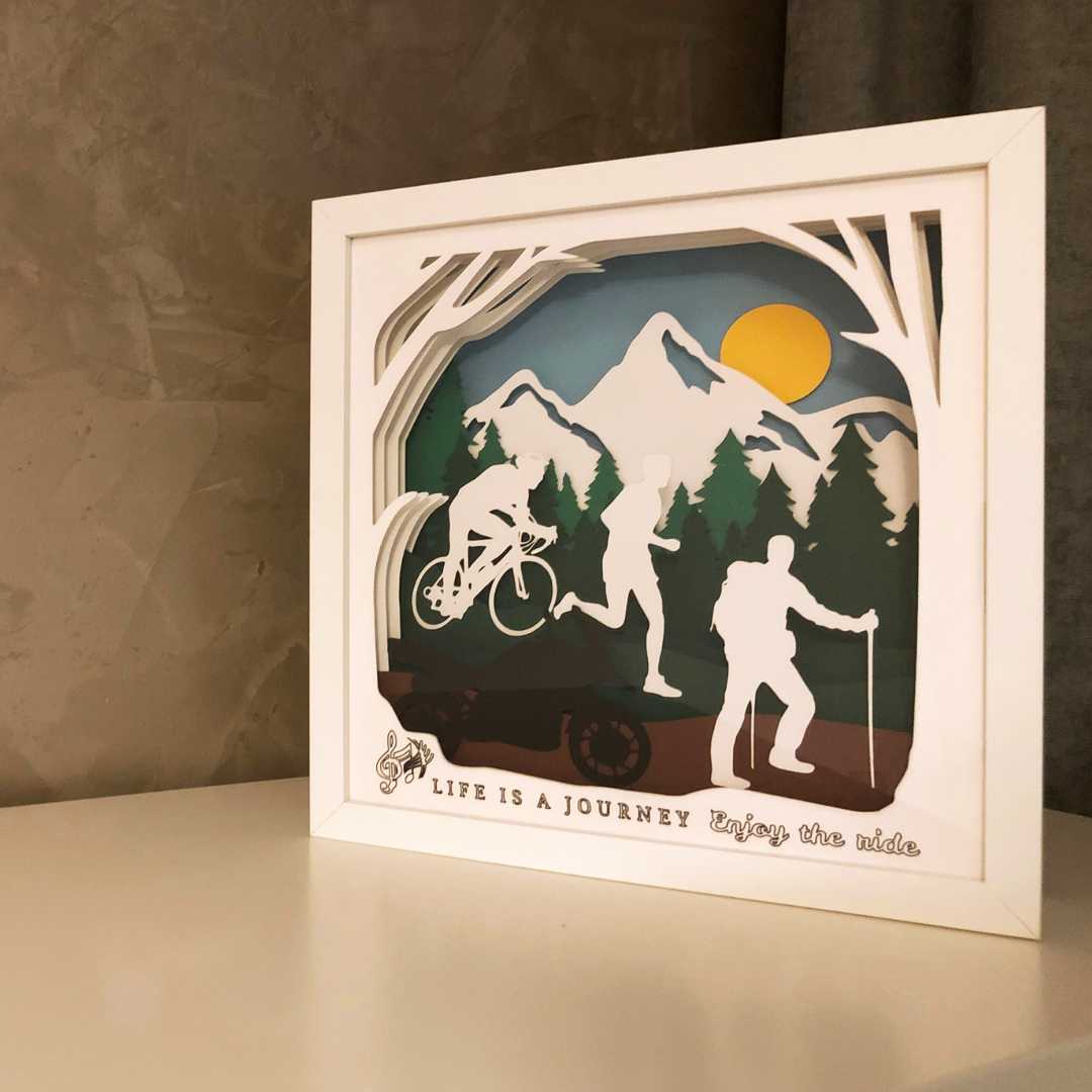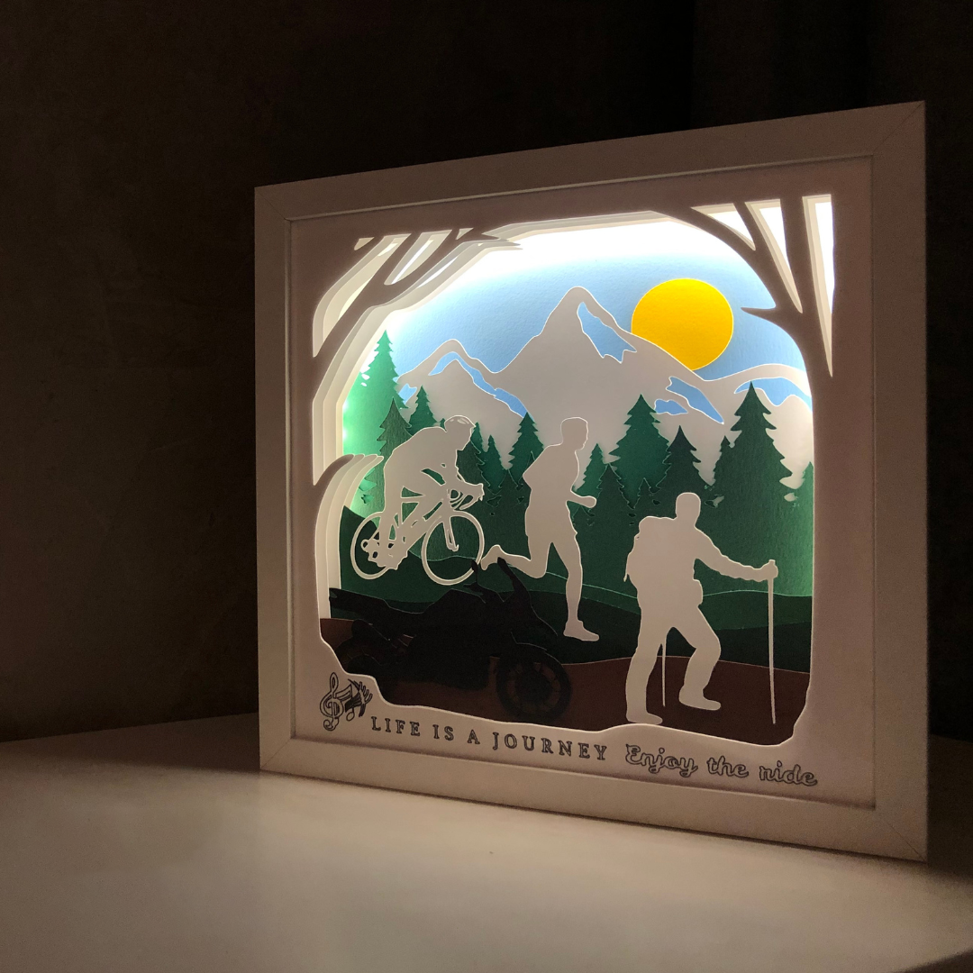 Tablourile luminoase lucrate manual, cu teme si mesaje personalizate, includ mai multe straturi de hartie, asamblate intr-o rama confectionata din MDF, cu protectie frontala din plastic polistirenic, fiind sigura pentru cei mici. Hartia utilizata pentru realizarea tablourilor este o hartie de calitate superioara, fara acid, care nu se ingalbeneste si are o rezistenta mare timp indelungat.