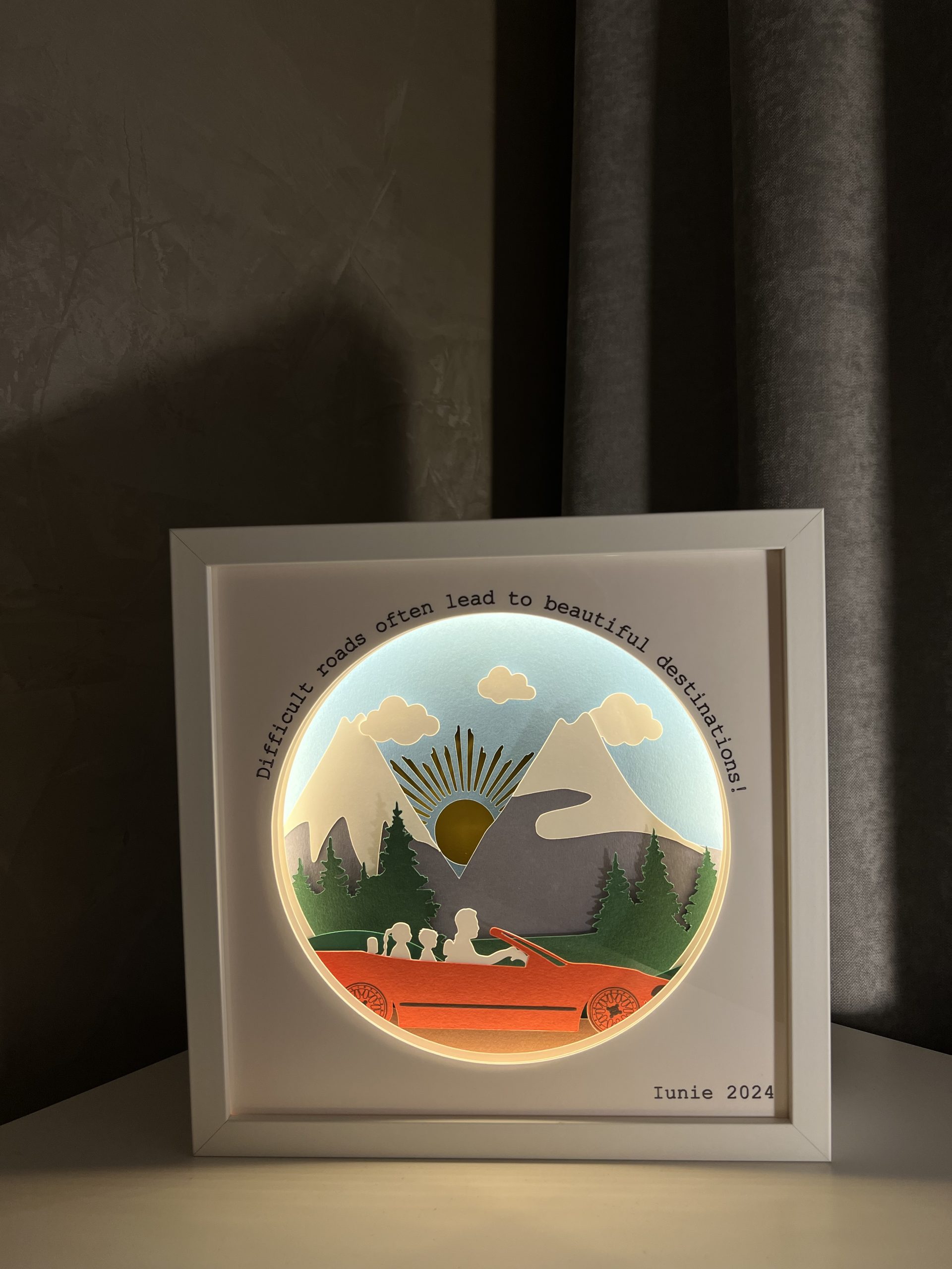 Fie ca este vorba despre o aniversare, o nunta, un botez sau un alt eveniment fericit, Noor Handmade Atelier te ajuta sa alegi cadoul perfect, care sa transmita emotie si recunostinta persoanelor importante din viata ta. Am lansat, pentru tine, un concept inedit in Romania: tablouri luminoase cu poveste. Sunt piese unicat, personalizate, care spun o poveste imaginativa prin iluminarea hartiei decupate si creeaza o atmosfera magica in incaperea in care sunt expuse, adaugand o nota de originalitate.