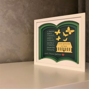 Tablourile luminoase lucrate manual, cu teme si mesaje personalizate, includ mai multe straturi de hartie, asamblate intr-o rama confectionata din MDF, cu protectie frontala din plastic polistirenic, fiind sigura pentru cei mici. Hartia utilizata pentru realizarea tablourilor este o hartie de calitate superioara, fara acid, care nu se ingalbeneste si are o rezistenta mare timp indelungat.