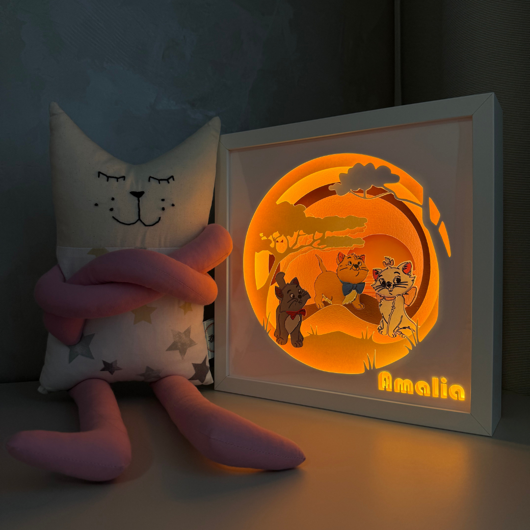 Folosite ca lampa de veghe pentru cei mici sau ca decor luminos 3D pentru cei mari, tablourile create in atelierul Noor emana o lumina calda si placuta, perfecta pentru povestile de la culcare sau ca sursa de lumina pe timpul noptii.