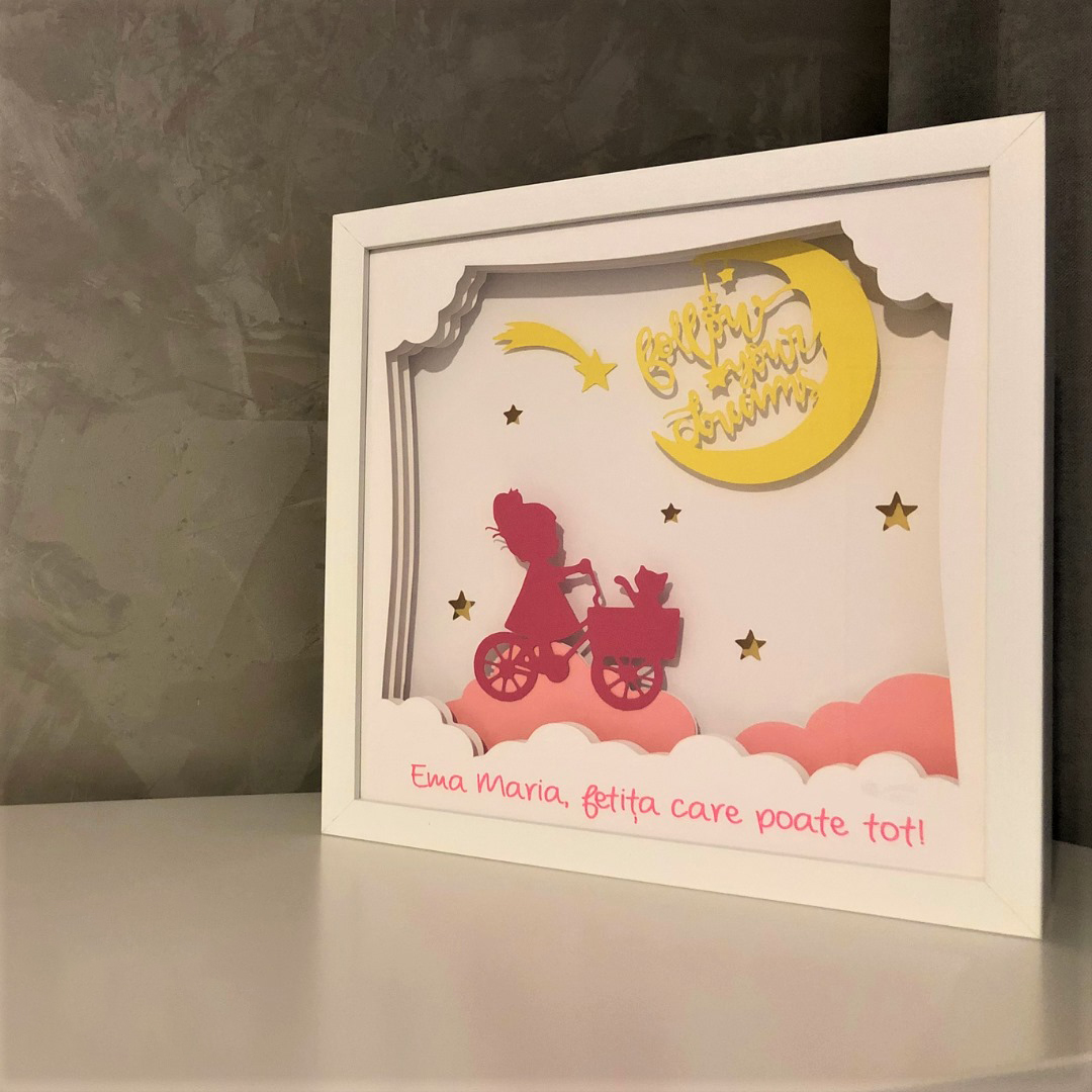 Putem sa iti personalizam comanda. De la personaje, culori, mesaje sau orice alte idei ai, putem sa iti transformam viziunea in realitate. Contacteaza-ne pentru a ne oferi toate detaliile, iar noi iti vom trimite o schita digitala pentru a fi sigur ca produsul final va fi exact cum ti-ai dorit.
