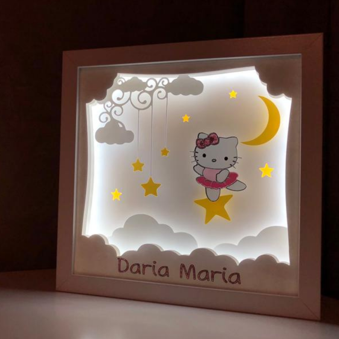 Tablourile luminoase lucrate manual, cu teme si mesaje personalizate, includ mai multe straturi de hartie, asamblate intr-o rama confectionata din MDF, cu protectie frontala din plastic polistirenic, fiind sigura pentru cei mici. Hartia utilizata pentru realizarea tablourilor este o hartie de calitate superioara, fara acid, care nu se ingalbeneste si are o rezistenta mare timp indelungat.