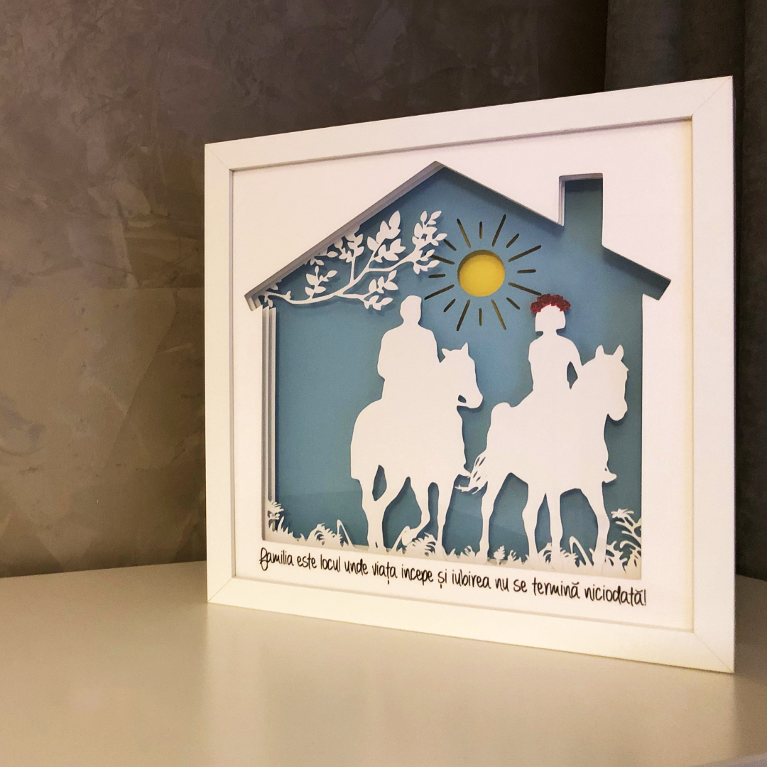 Fie ca este vorba despre o aniversare, o nunta, un botez sau un alt eveniment fericit, Noor Handmade Atelier te ajuta sa alegi cadoul perfect, care sa transmita emotie si recunostinta persoanelor importante din viata ta. Am lansat, pentru tine, un concept inedit in Romania: tablouri luminoase cu poveste. Sunt piese unicat, personalizate, care spun o poveste imaginativa prin iluminarea hartiei decupate si creeaza o atmosfera magica in incaperea in care sunt expuse, adaugand o nota de originalitate.