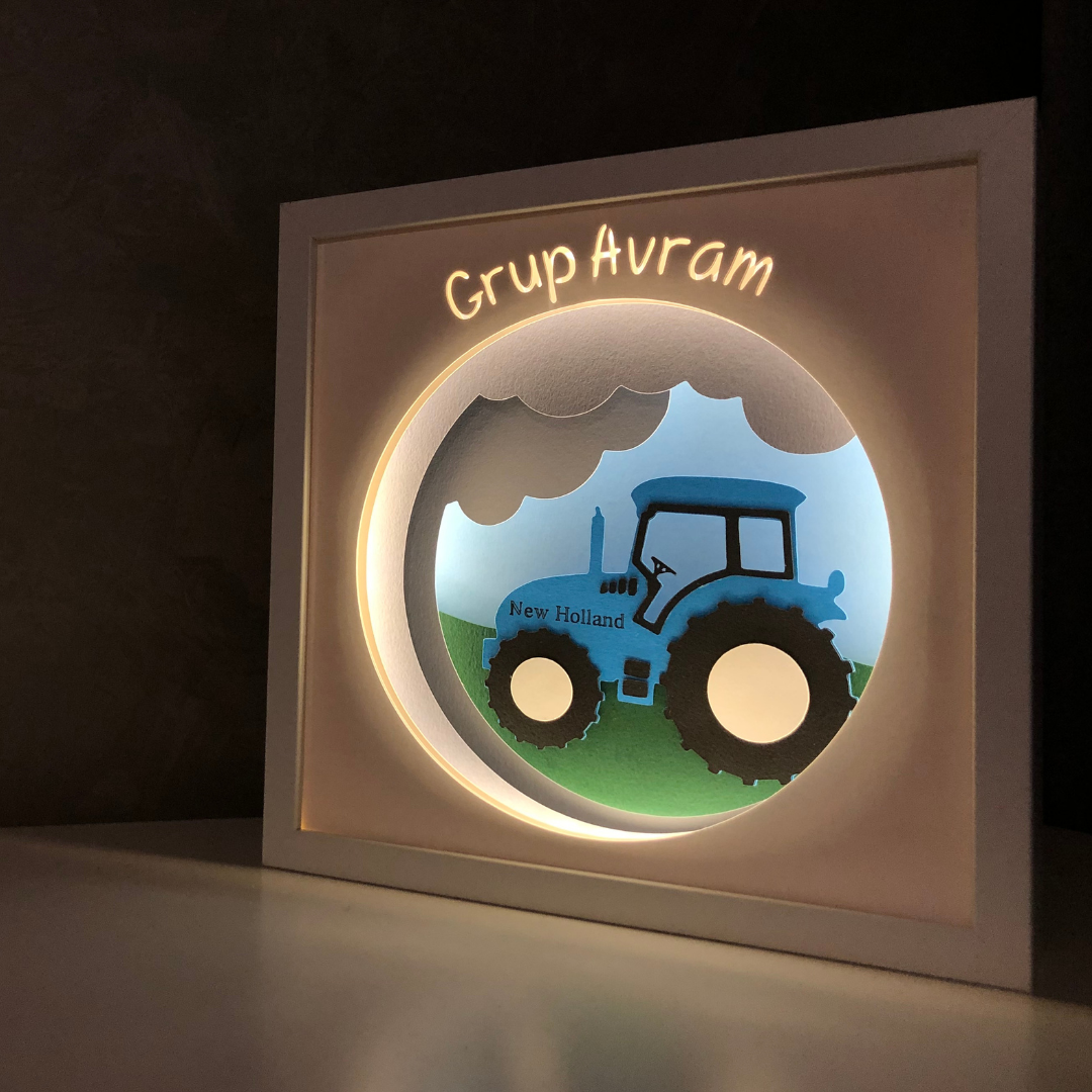 Tablourile luminoase lucrate manual, cu teme si mesaje personalizate, includ mai multe straturi de hartie, asamblate intr-o rama confectionata din MDF, cu protectie frontala din plastic polistirenic, fiind sigura pentru cei mici. Hartia utilizata pentru realizarea tablourilor este o hartie de calitate superioara, fara acid, care nu se ingalbeneste si are o rezistenta mare timp indelungat.
