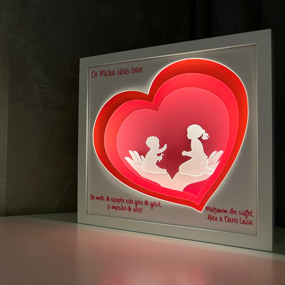 Fie ca este vorba despre o aniversare, o nunta, un botez sau un alt eveniment fericit, Noor Handmade Atelier te ajuta sa alegi cadoul perfect, care sa transmita emotie si recunostinta persoanelor importante din viata ta. Am lansat, pentru tine, un concept inedit in Romania: tablouri luminoase cu poveste. Sunt piese unicat, personalizate, care spun o poveste imaginativa prin iluminarea hartiei decupate si creeaza o atmosfera magica in incaperea in care sunt expuse, adaugand o nota de originalitate.