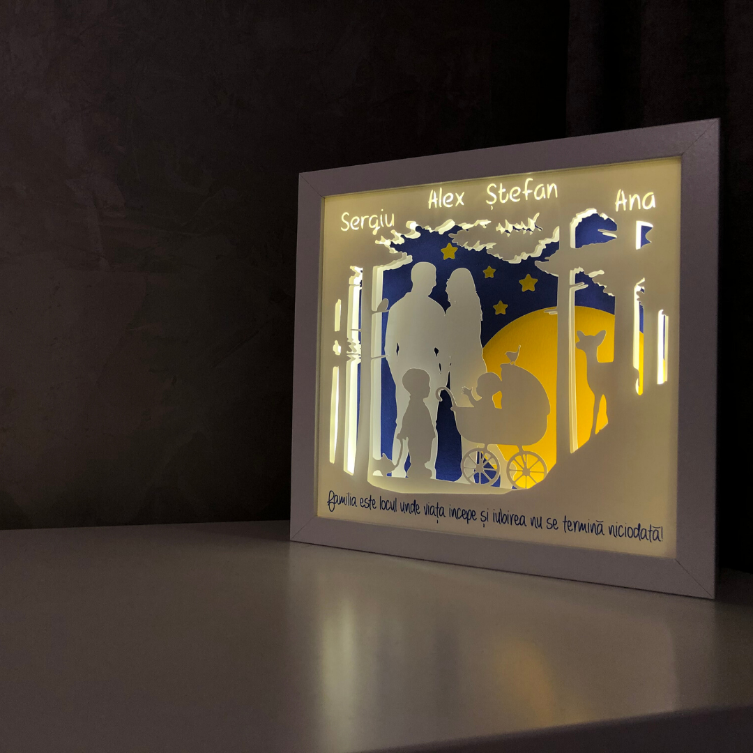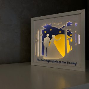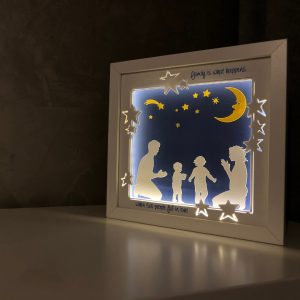 Folosite ca lampa de veghe pentru cei mici sau ca decor luminos 3D pentru cei mari, tablourile create in atelierul Noor emana o lumina calda si placuta, perfecta pentru povestile de la culcare sau ca sursa de lumina pe timpul noptii.