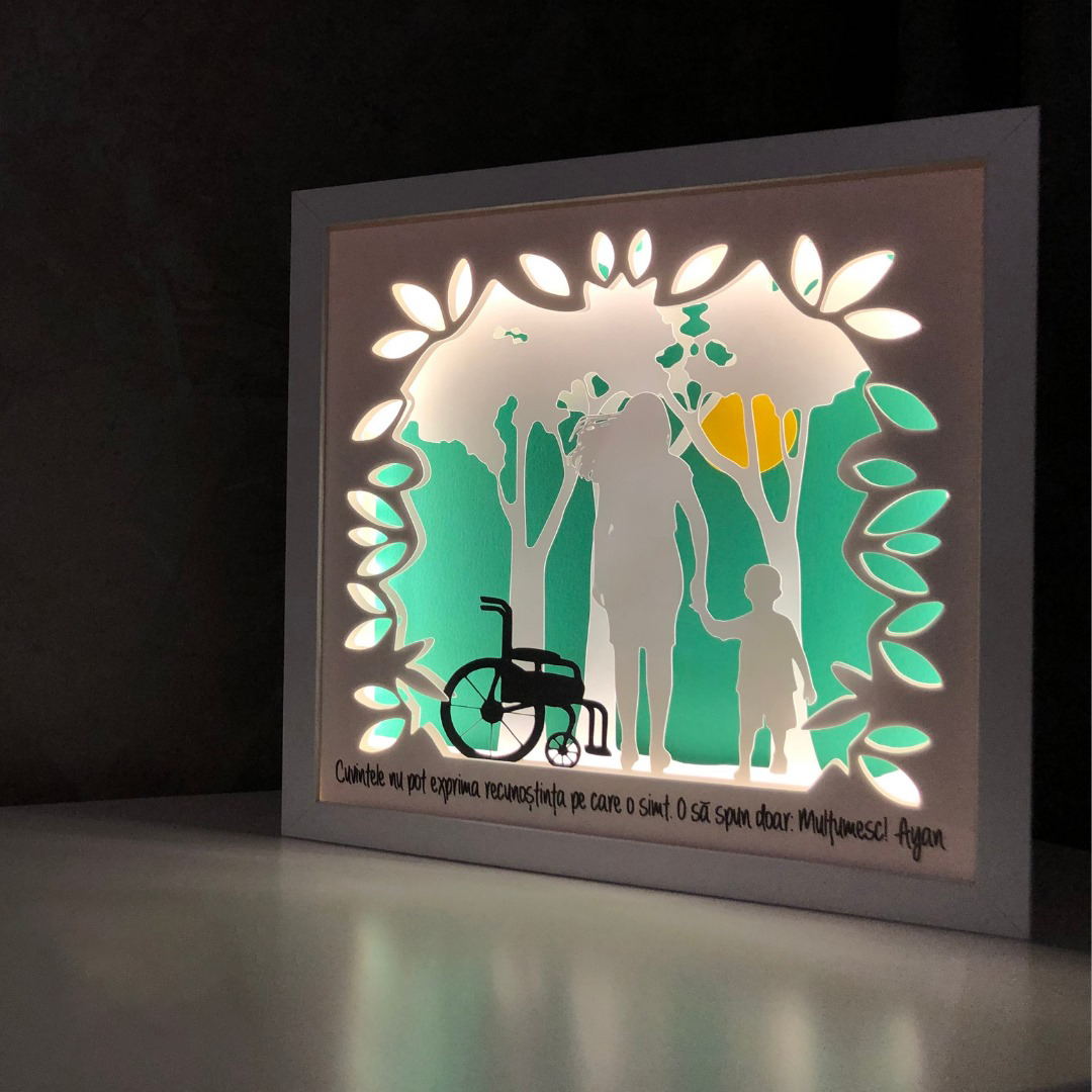 Folosite ca lampa de veghe pentru cei mici sau ca decor luminos 3D pentru cei mari, tablourile create in atelierul Noor emana o lumina calda si placuta, perfecta pentru povestile de la culcare sau ca sursa de lumina pe timpul noptii.